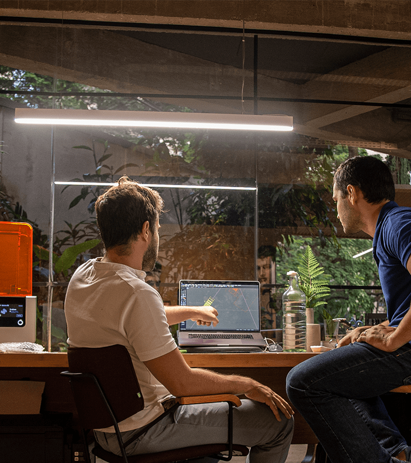 O estúdio está estruturado com uma oficina completa para dar suporte ao processo criativo. Materializar as ideias é dar vida aos produtos mais cedo, envolvendo o cliente ou o usuário final em insights assertivos. Trabalhamos com diversos protótipos até alcançarmos a perfeição, possibilitando acelerar a produção em série com o mínimo de risco possível.